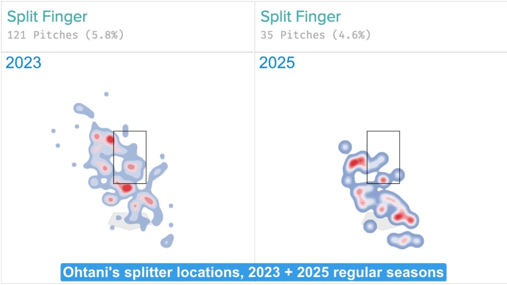 Al comenzar la postemporada de 2025, Ohtani lanzaba su splitter apenas una vez cada 20 pitcheos. Antes, lo lanzaba una vez cada cinco.